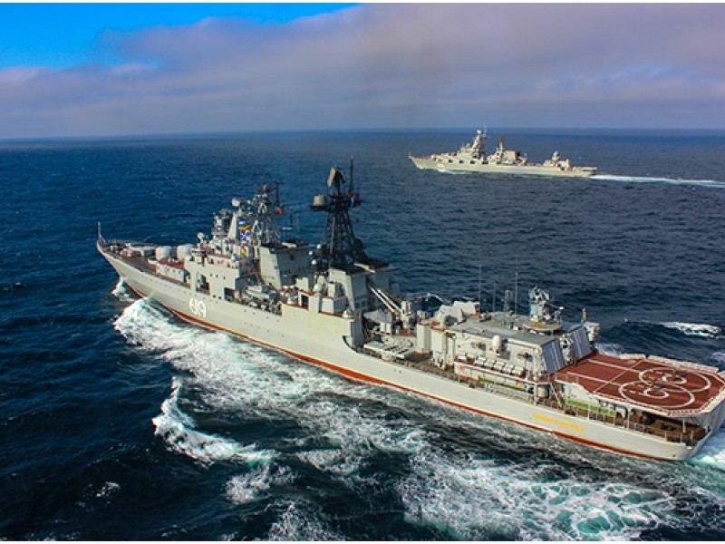 Крейсер «Маршал Устинов» и БПК «Североморск» Северного флота работают в Северной Атлантике