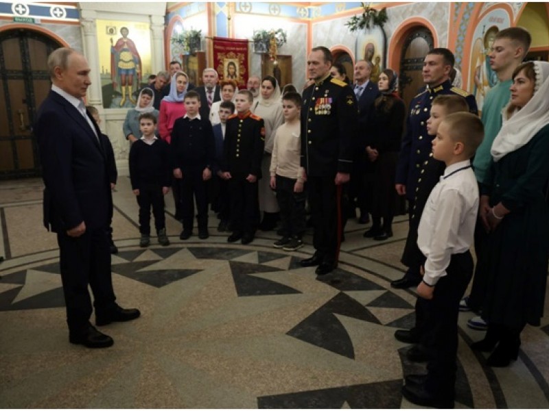Президент России Владимир Путин после рождественского богослужения обратился к детям военнослужащих, подчеркнув, что они по праву могут гордиться своими отцами и матерями, как всегда в России гордились воинами.