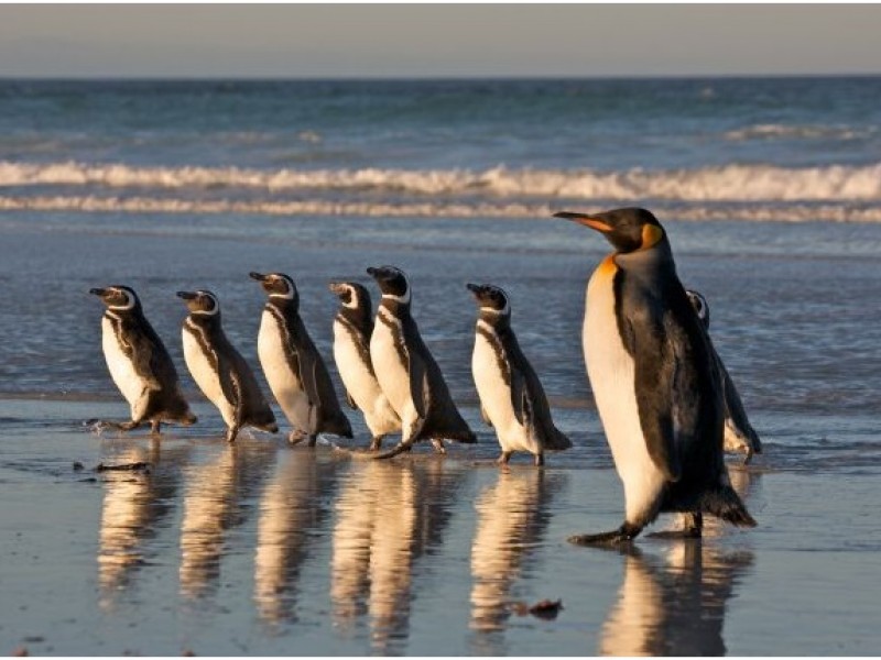 Пингвины – семейство нелетающих морских птиц, представители которого хорошо плавают и ныряют. В семействе насчитывается 18 современных видов пингвинов. Самым большой из них – это императорский пингвин, его рост может достигать 120 см, а вес – более 40 кг. Самый маленький представитель вида – малый пингвин, который не выше колена взрослого человека, а его вес не превышает 2,5 кг.