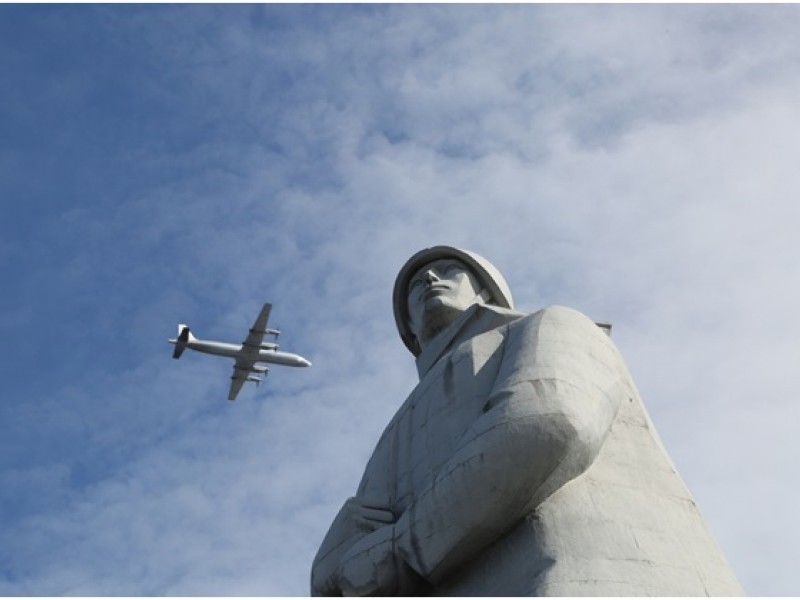 "14 самолетов и три вертолёта поднялись с четырех аэродромов базирования в Мурманской и Вологодской областях и собрались в заполярном небе, чтобы единым строем пройти на высоте 200 метров над символом города-героя Мурманска – 35-метровым бетонным солдатом, устремившим взор в сторону государственной границы", - говорится в сообщении.