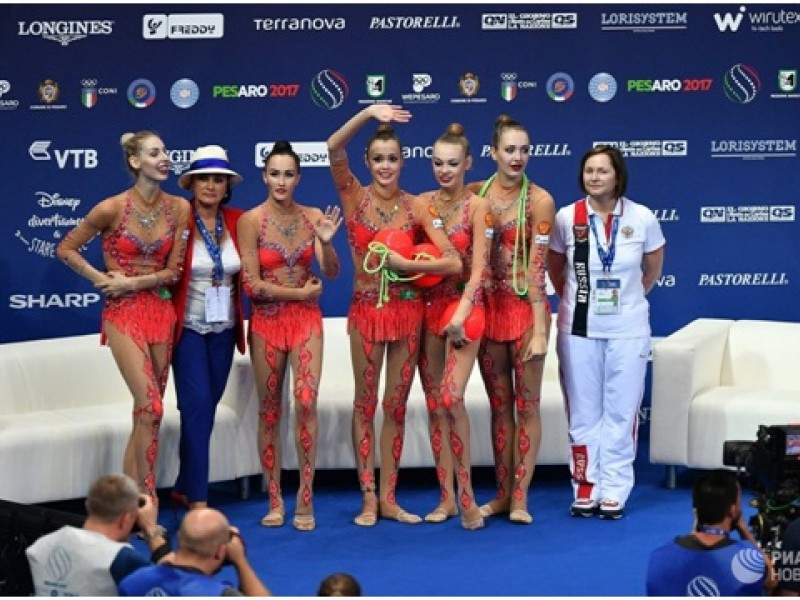 Россиянки Анастасия Близнюк, Евгения Леванова, Ксения Полякова, Анастасия Татарева, Мария Толкачева и Мария Кравцова завоевали золото в групповом многоборье на чемпионате мира по художественной гимнастике в Пезаро (Италия).