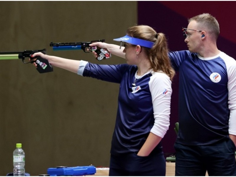 Россияне Виталина Бацарашкина и Артем Черноусов взяли серебряные медали в соревнованиях смешанных команд в стрельбе из пневматического пистолета с 10 метров на Олимпийских играх в Токио.