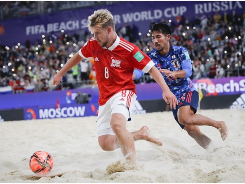 Сборная России победила команду Японии в матче чемпионата мира по пляжному футболу в Москве и с первого места вышла в плей-офф турнира. Встреча третьего тура группы A, прошедшая в понедельник, завершилась со счетом 7:1 (3:0, 1:0, 3:1) в пользу россиян. Хет-трик у россиян оформил Артур Папоротный (3-я, 25-я, 27-я минута), кроме него отличились Федор Земсков (8), Максим Чужков (15) и Борис Никоноров (36). Автоголом отметился Озу Морейра (1) из сборной Японии. В составе проигравших отличился Такуйя Акагума (32).